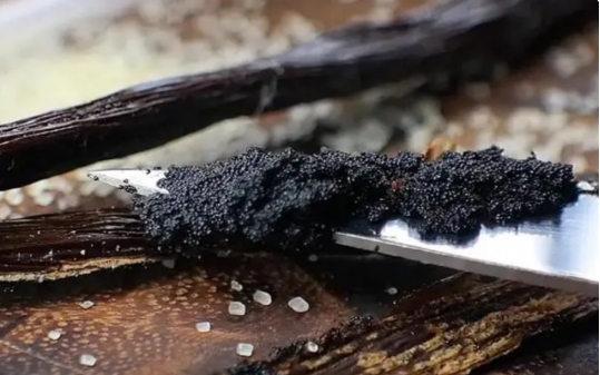 香草荚的使用方式也格外特殊,并不是一整根全部拿来调味,香味的来源是果荚里小小的、黑色的香草籽,用小刀将香草荚从中间切开,稍微刮一刮,将香草籽和一点果荚泥浸泡在其他食材中增加香味。