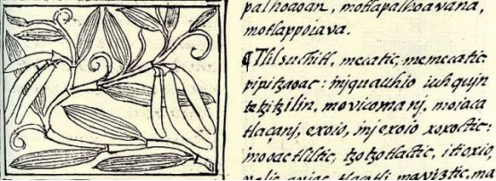 图示1580年描述香荚兰的墨西哥文献,由纳瓦特语书写