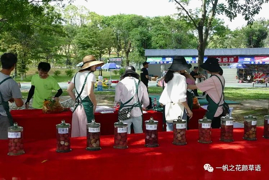 荔枝在广东有大年小年之分,三四月份徜徉东莞植物园之时,路过荔枝园,见到满园的荔枝花,想必今年一定是荔枝的大年了。没想到,五月南方地区的一场特大暴雨,把荔枝的“大年”一夜打回“小年”,替果农心疼了一把。荔枝大都是六月成熟,我却在五月吃到了今年的第一颗荔枝,那是丽姐从高州根子带回来的早熟荔枝。可让我念念不忘的还是东莞植物园的荔枝。在六月底,他们公号的推送《六月到,啖荔枝》更是把我的胃口吊起来了,文中介绍的很多荔枝品种闻所未闻,让我神往。终于在荔枝成熟之时,东莞植物园举办了荔枝文化科普展览,有幸来到现场见识了荔枝品种的丰富性,吃了几十年荔枝,都不知道荔枝居然那么多品种,现场的展示让我瞪目结舌,原来荔枝除了常见的黑叶、妃子笑、糯米糍、桂味,还有水晶球、陈紫、元红、观音绿、红绣球……更开心的是,在植物园@teen的引领下,进入荔枝园,形态各异的荔枝树与荔枝出现眼前,有机会感受荔枝风味的多样性与荔枝文化的博大精深,让我大呼过瘾。尽管吃也吃了,拍了拍了,品种还是傻傻分不清。▼东莞植物园的荔枝园。