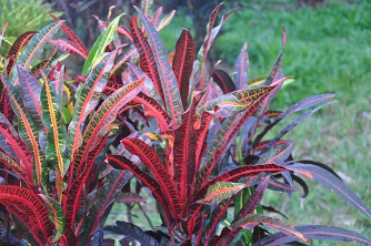 变叶木是优良的园林观叶植物,变型和栽培品种多,叶形和叶色变化多。叶薄革质,叶形有的恰似蜂腰,有的状若戟形,有的旋若螺旋,有的类似柳叶,有的扭曲皱边……千姿百态;叶色有绿色、淡紫色、紫红色、紫红与黄色相建、黄色与绿色相间或有时在绿色叶片上散生黄色或金黄色斑点或斑纹;总状花序腋生,雌雄同株异序。