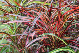 长叶系,叶长条形,叶脉红色或黄色,叶上有红色或黄色斑纹。